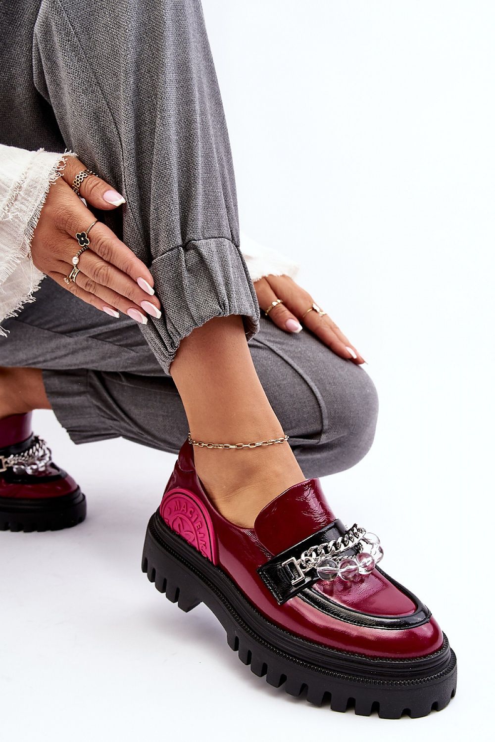Women's half-shoes by Maciejka are made of high-quality natural leather. Set on a flat heel and a platform. Decorations on the front on the strap. Rounded toe caps. Large brand logo on the side of the upper. The heel counter is stiffened.