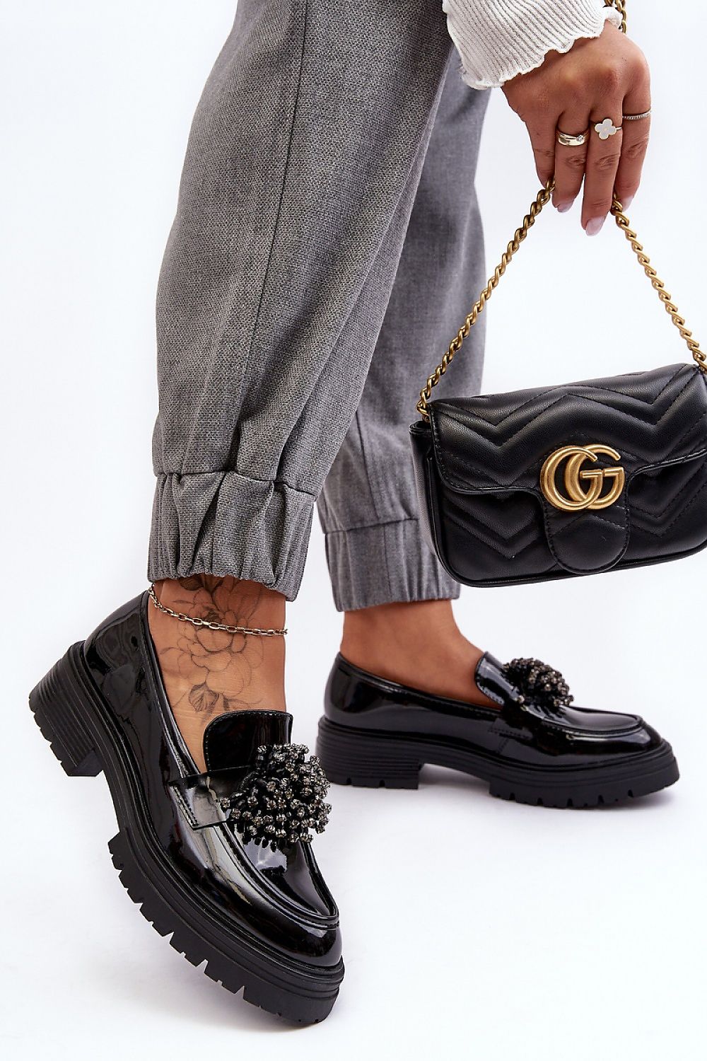 Classic women's half shoes made of eco leather. Set on a thick sole and a flat heel. Almond-shaped toes. Comfortable eco leather insole will provide comfort during use. On the front on the strap decoration. This model will be perfect for almost any autumn styling!