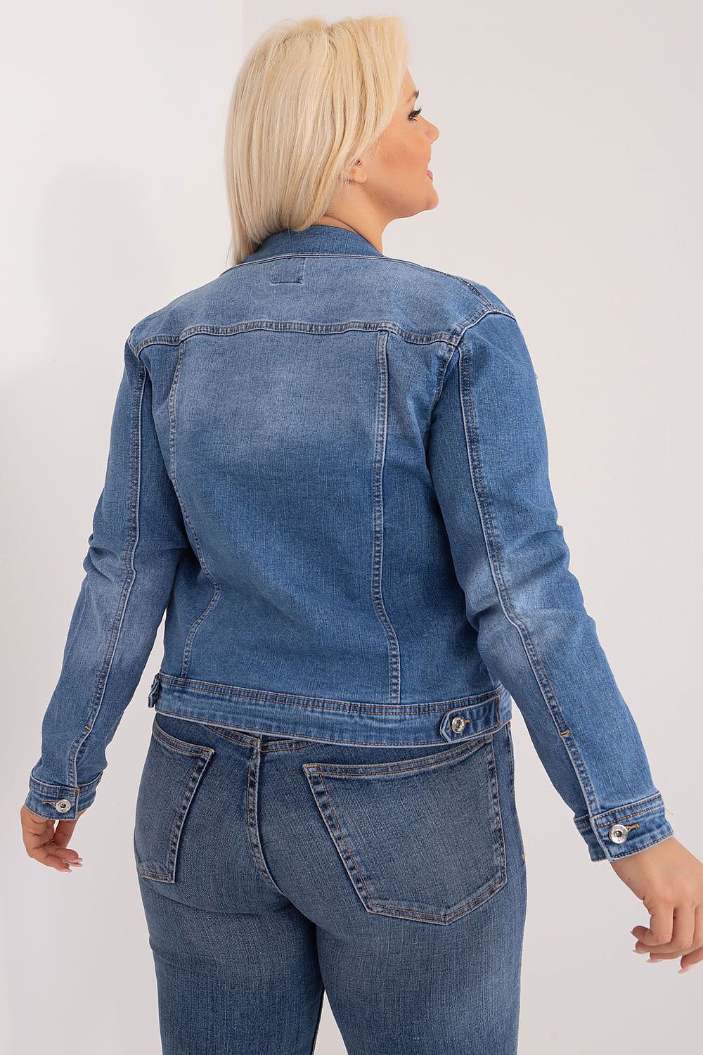 The plus size denim jacket is not only a distinctive piece of casual closet, but also a comfortable and stylish option for everyday wear, including work. Its versatile nature makes it a perfect match for a wide variety of outfits, guaranteeing freedom of movement and comfort throughout the day. Whether for work or casual wear, this jacket will be a must-have accessory to complement any outfit. Its sleek design is timeless and easily blends in with other garments. Made mainly of high-quality cotton, it provides a comfortable and breathable feel, which is especially important in the warmer days of spring and summer. The standard length and long sleeve provide extra protection and comfort. The button closure makes it easy to quickly put on and take off the jacket, adding a distinctive touch. Pockets with patches at chest level are a practical addition for convenient storage of small items or your phone. This plus size denim jacket is an excellent option for spring and summer days, when we want to feel fashionable and comfortable both on and off the job. Its versatile nature means that we can wear it in a variety of circumstances, adding a unique spice to our styling.