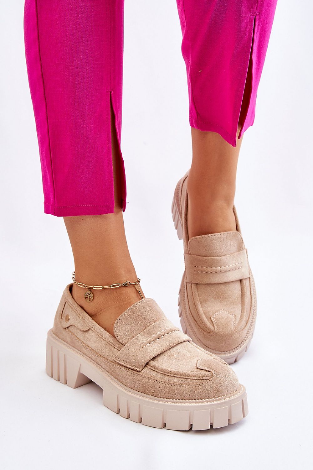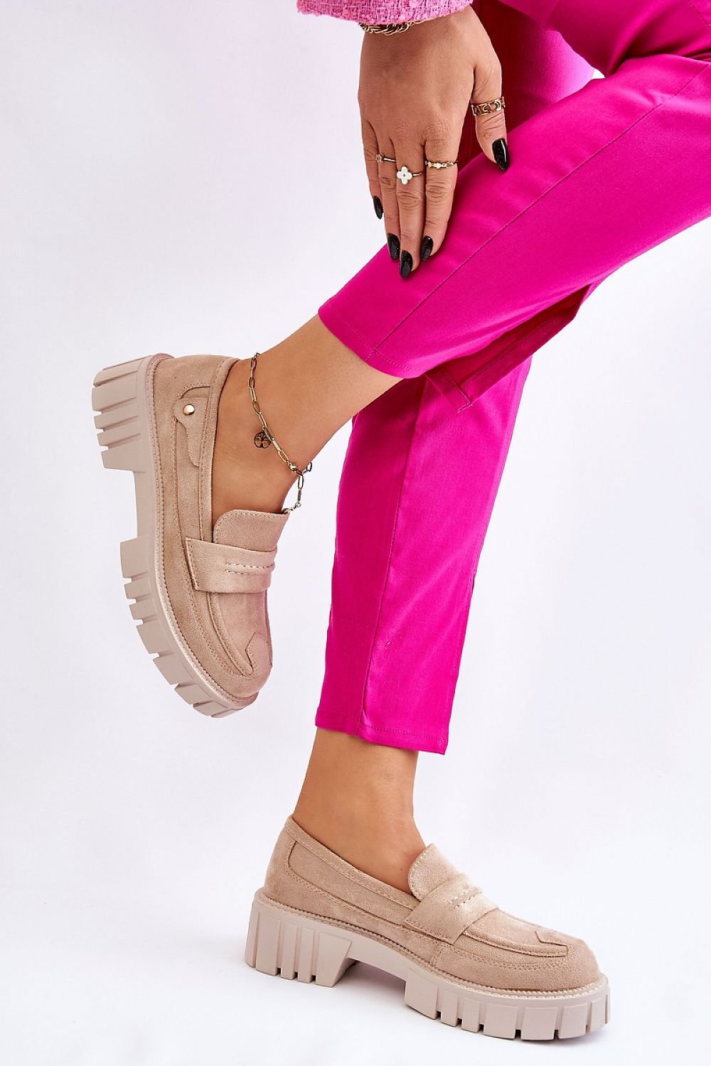 Great loafer-style half shoes were made of high-quality eco leather with hems. Characteristic decoration in the form of a strap on the front and a rivet on the side of the upper. They have a massive platform and a flat heel. The soft eco leather insole will ensure comfort during use of the shoes. In addition, the heel counter is padded.