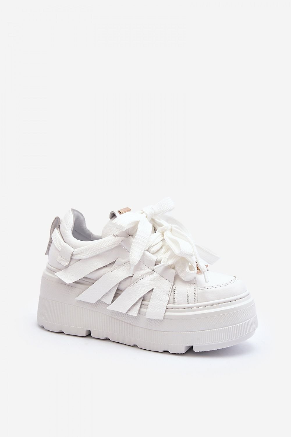 Women's sneakers made of high-quality natural leather are not only an expression of sturdiness, but also a fashionable approach to style. Their massive platform gives them a modern look, while providing stability when walking. The rounded toe adds subtlety, while the stiffened heel counter ensures support for the foot. Thanks to the leather insole, the shoes provide unparalleled comfort, even during prolonged wear. This extremely fashionable cut will perfectly complement your spring stylings, giving them a unique character and individual style.